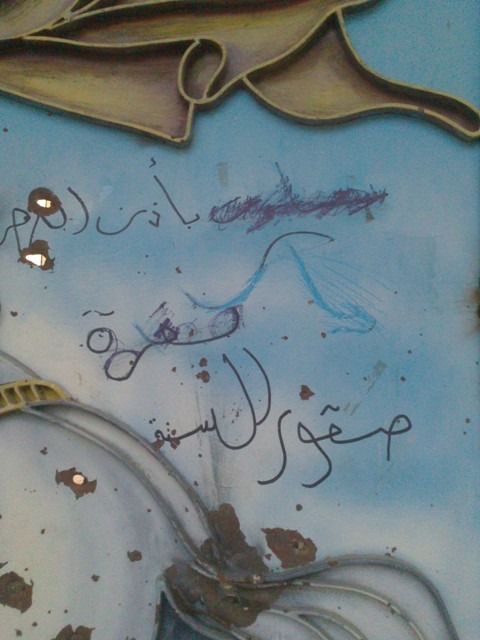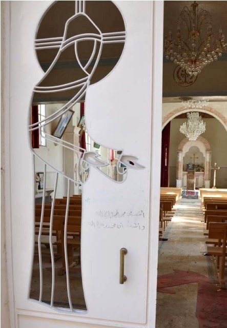 However, we were still able to read what the Suqoor Al-Sunna had written on the walls and gate of St. Thomas Church. The following writings explain the mindset and plans of this group of rebels. Unfortunately, there are many such groups within the rebels.