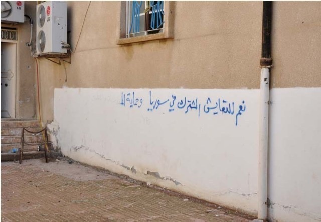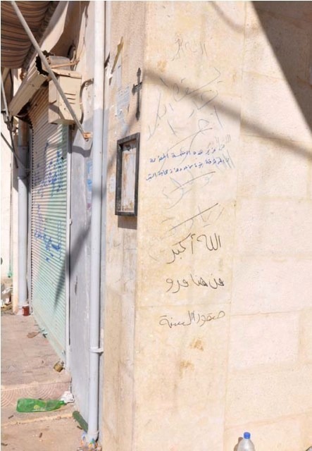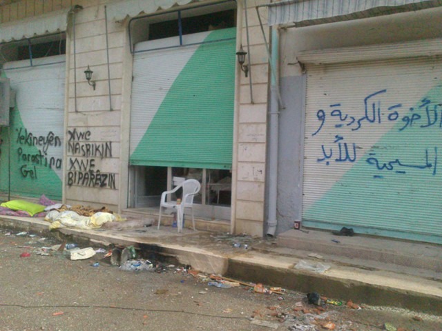 When the Kurdish forces drove away the rebels from the Street of Churches in Ras Al-Ayn, they wrote their positive words over the negative words of Suqoor Al-Sunna. The intention of the Kurdish forces was to show their sympathy with Christians and with all other peaceful people of the town, though unfortunately this made it more difficult to read the negative words from the rebels that made clear their feelings toward the Christians.
