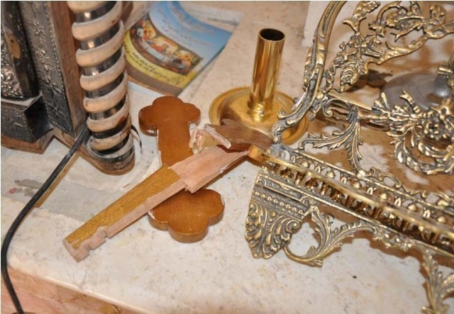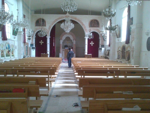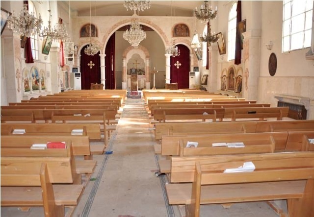 Seventy-five year old Constantine Junan, a native of Ras Al-Ayn, Syria, insisted he stay in his home even after ten weeks of intense fighting in the city. This week, he was finally forced out by rebels. The rebels came to him after midnight and threatened his life and the life of his son, Junan, who had stayed with his father as others fled the city. Constantine was convinced that the men were intending to kill him and his son unless he obeyed their orders. He asked them to allow him to stay until sunrise, promising to leave then. In the morning, Constantine and Junan went into the church to pray and to receive the blessings of St. Thomas from the icon there. They were very sad to see that many of the metal, wood and stone crosses inside the church were broken. Constantine knew that the rebels forced him to leave his hometown so that he would not be an eyewitness to what was to happen there in the coming period.